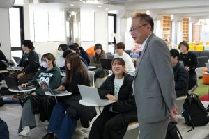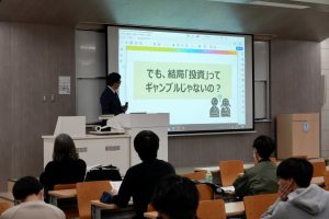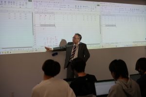 1年生向けのデータサイエンスでは、マレーシア在住のData Informed CEO西岡賢一郎さんに「成功と失敗の実像と生成AI時代の展望」と題して講演をして頂きました。